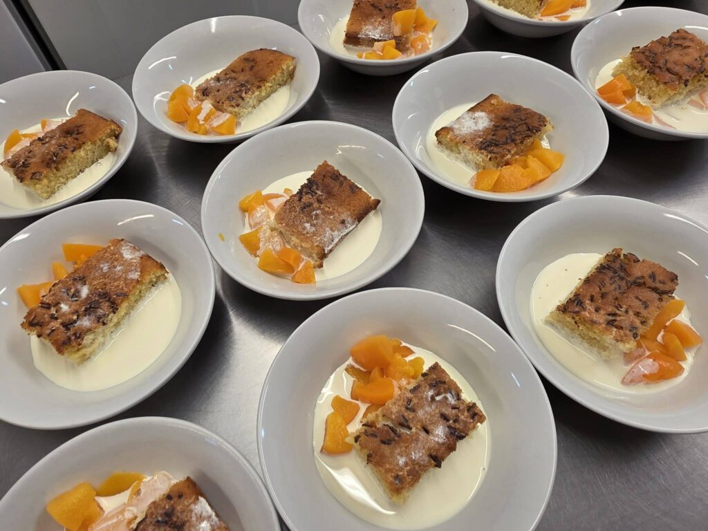 Thursday dinner: Pork hot pot or veggie cakes, vegetables, mashed potatoes. Pudding: vanilla sponge with peaches ๐Ÿ‘ ๐Ÿ‘ ๐Ÿ‘ and cream ๐Ÿ˜‹ Tea time: Warm turkey and cranberry sandwiches or cheese and tomato rolls, blueberry muffins or sugar free peaches muffins ๐Ÿ˜‹
